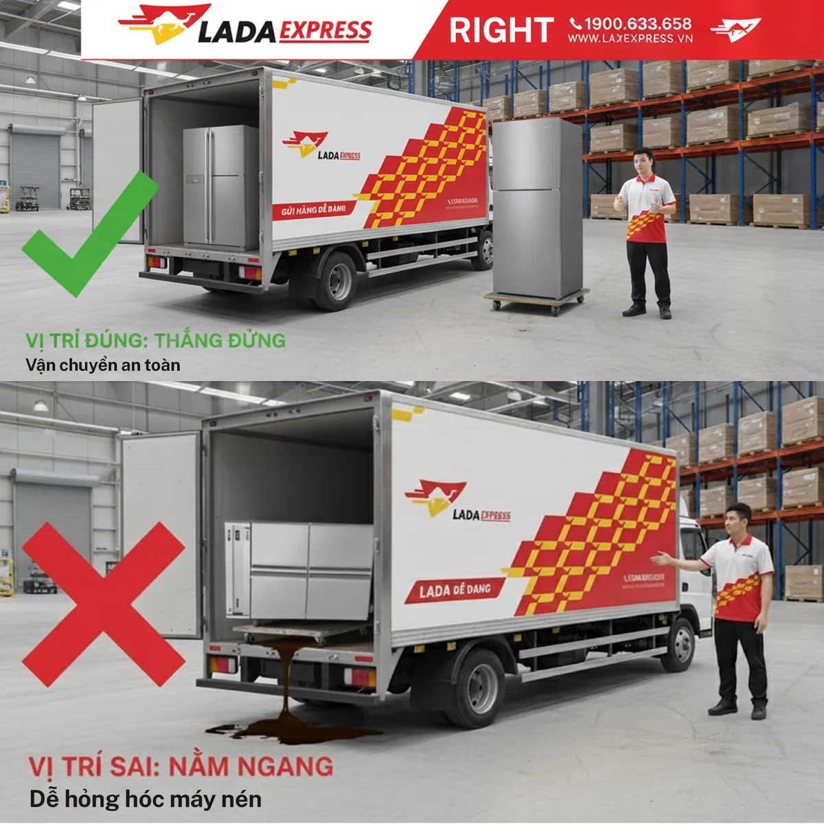 Vận Chuyển Tủ Lạnh Nằm Ngang - Những Rủi Ro Bạn Cần Biết Và Giải Pháp Từ LADA Express